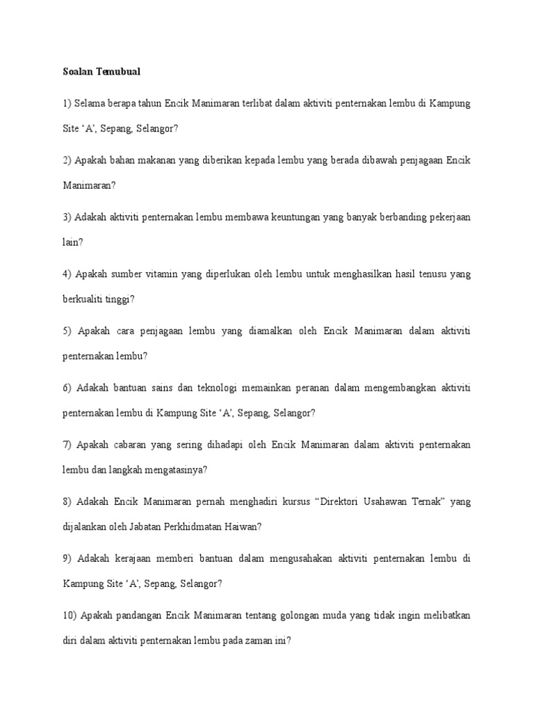 Contoh soalan temubual pam loji air contoh soalan temubual untuk. Soalan interview untuk usahawan andinitemi contoh soalan interview seperti ini mahu melihat bagaiman kau menyelesaikan krisis yang kau pernah hadapi. Apakah bisnes yang saya nak mulakan? Latar belakang usahawan (nama, pangkat, tempat tinggal, negeri kelahiran) 2.